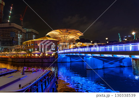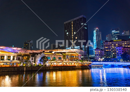 シンガポール 夜のクラーク・キー、リード・ストリート