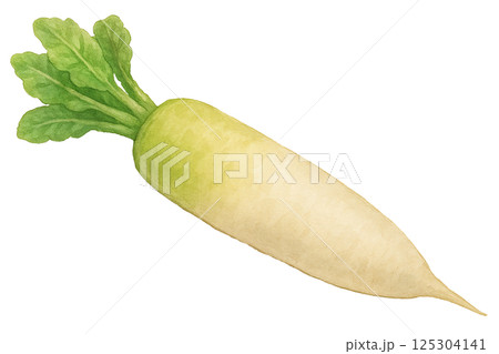 水彩で描いた新鮮な大根のイラスト(野菜)