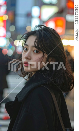 コートを着たカメラ目線の女性(AI生成画像)