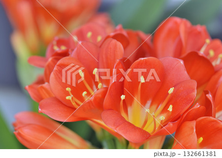 Close-up of vibrant orange clivia flowers in bloom.