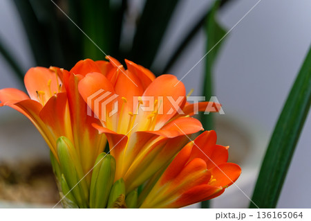 瑞々しい君子蘭の花と蕾