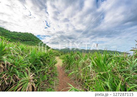静かな山道と鮮やかな緑が彩る石垣島 梅雨空