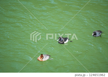 宇治川のカモたち ホシハジロ オオバン 宇治市