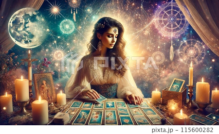 スピリチュアルタロットカードをめくる女性 タロット占い師
