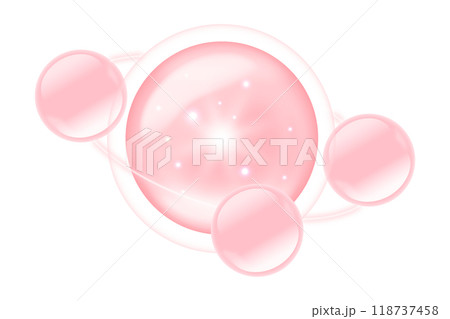 光る惑星や星、美容成分の結合をイメージしたベクターイラスト