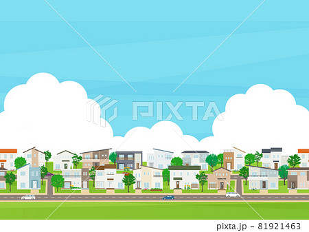 賑やかな初夏の街並み背景ヨコ
