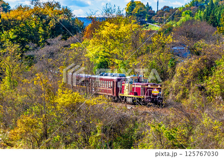わたらせ渓谷鐵道 紅葉のわたらせ渓谷を走るトロッコわたらせ渓谷号(沢入付近)