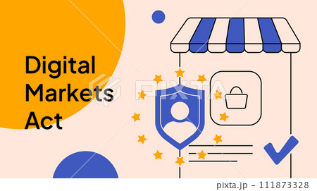 Explore implications of Digital Markets Act, EU landmark DMA legislation reshaping tech industry dynamics, fostering fair competition and enforcing online platform regulations. Vector illustration