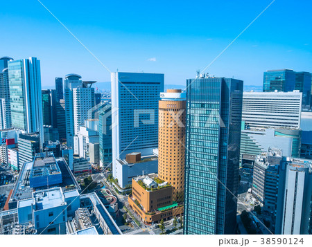 梅田のビル群 朝 梅田DTタワー付近からの風景
