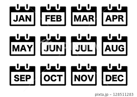 月名カレンダー 英語表記 アイコンセット モノクロ