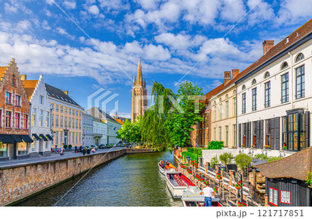 Cityscape with canal Dijver and a Church of Our Lady in Bruges