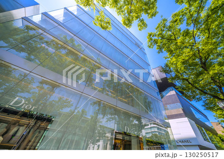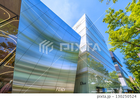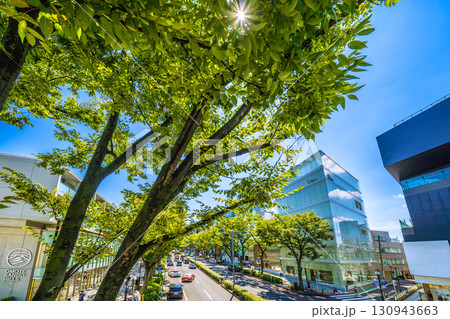 日本の東京都市景観 東京・表参道の緑溢れる並木やFENDIなどを望む