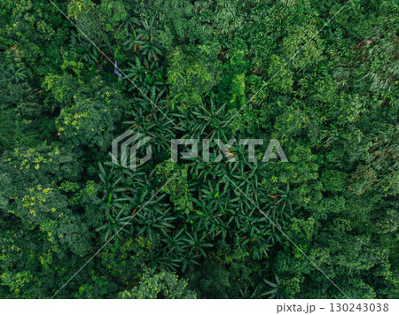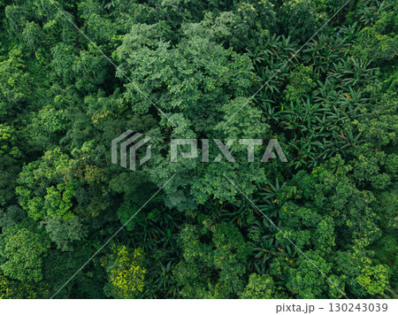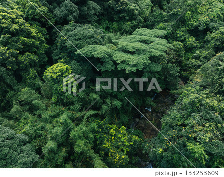 Aerial view of beautiful tropical forest mountain landscape in summer