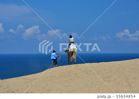 鳥取砂丘・広大な砂丘を歩く人物のイメージく(7)