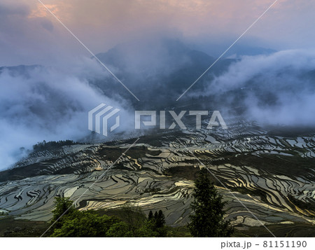 中国雲南省元陽・ 多依樹棚田の夜明け / Duoyishu, Yuanyang, China