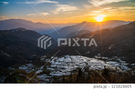 Laohuzui(Tiger Mouth) rice terrace at sunset, Yuanyang, Yunnan, China