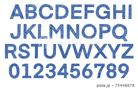 青の数字や大文字アルファベットのセット(手書き風)
