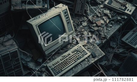 Electronic waste heavy industry garbage old and dirty