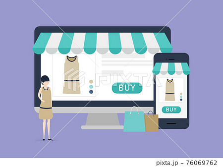eコマース・OMO・O2O・オムニチャネルのイラスト素材