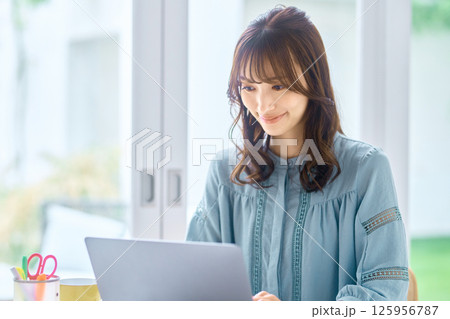 自宅でパソコンを操作する若い女性