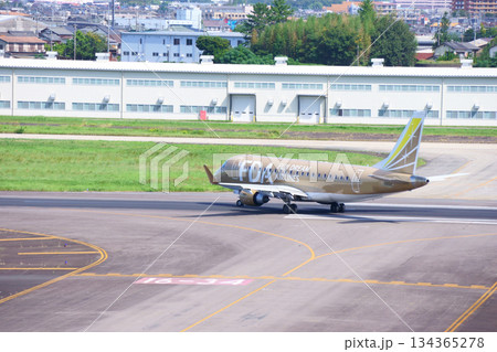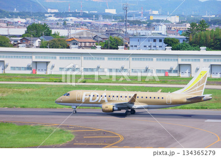 離陸を待つフジドリームエアラインズ(FDA)の旅客機エンブラエル175