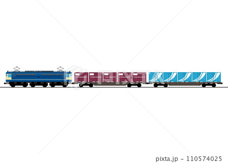 EF65形 電気機関車とコンテナ シンプルなイラスト