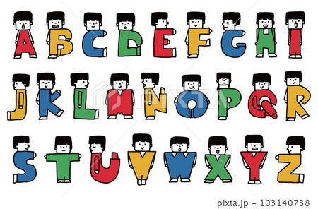 アルファベットの形をしたコミカルな男の子のイラストセット