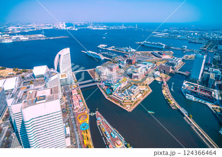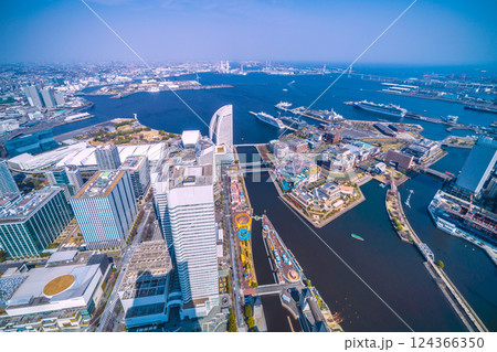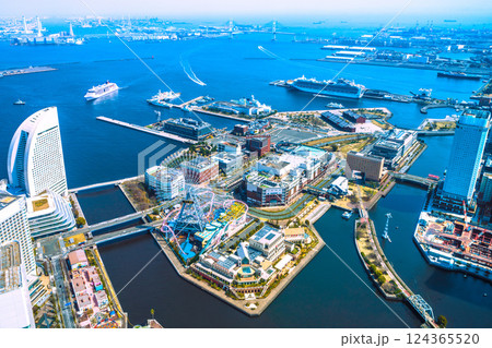 日本の横浜都市景観 大さん橋のダイヤモンド・プリンセスなどを望む。(この日は、オイローパ2が初入港)