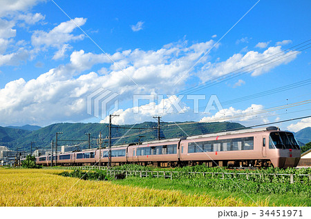 伊勢原の水田地帯を走る小田急ロマンスカーEXE-α
