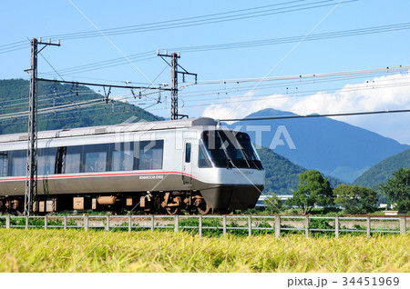 伊勢原の水田地帯を走る小田急ロマンスカーEXE