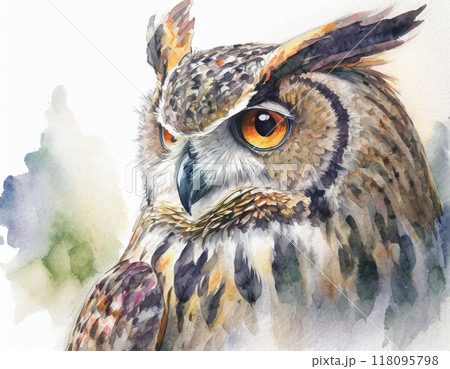 水彩画で描かれたフクロウ