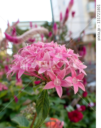 公園の花壇にピンク色のペンタスの花が咲いています。学名はPentas lanceolataです。