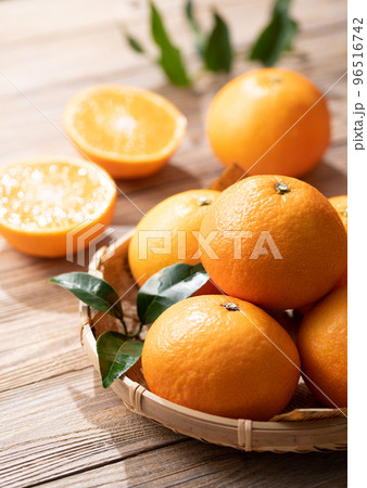秋の味覚 とっても甘くておいしい早生みかん 温州みかん ( 少し青くなりつつある蜜柑 )