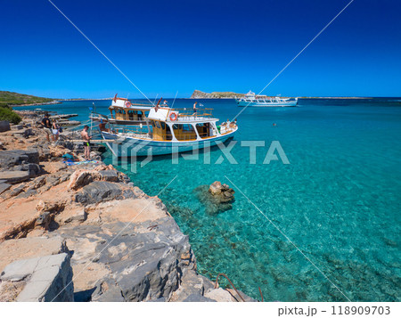 青い海に浮かぶ無人島 (ギリシャ、クレタ島、エロウンダ)