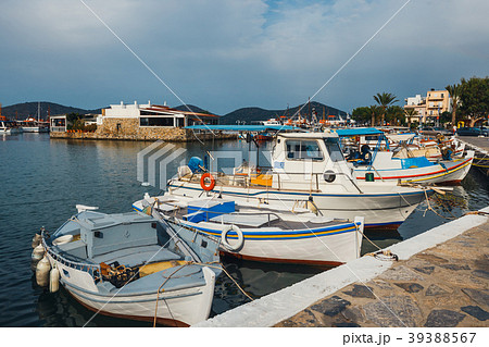 港に係留するボート (ギリシャ、クレタ島、エロウンダ)