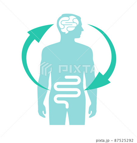 Gut brain connection. Interaction, cooperation and health effects from emotions and thoughts to stomach digestive system. Enteric nervous system in human body. Signals from brain to digestive tract