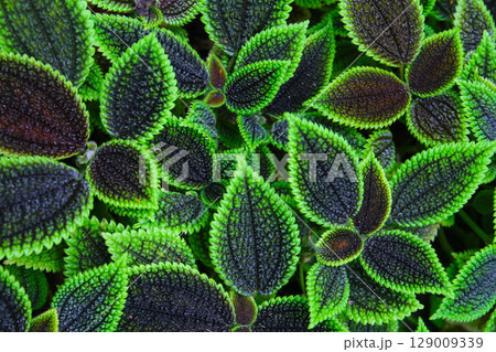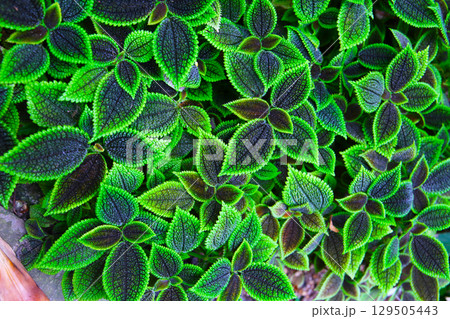 Colorful pattern and soft fur on the leaf surface of the Carpet Plant