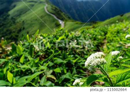 東黒森への登山道に咲くヒヨドリバナと夏のUFOライン 高知県吾川郡いの町