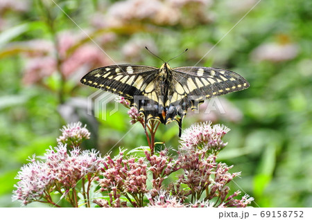ヨツバヒヨドリを吸蜜する蝶 キアゲハ
