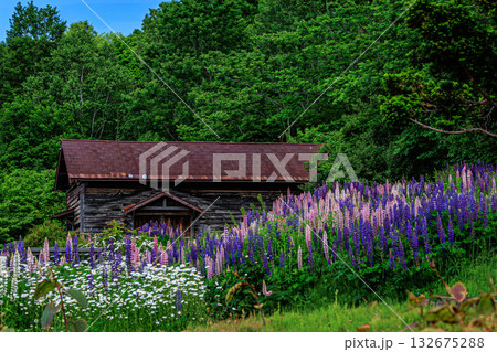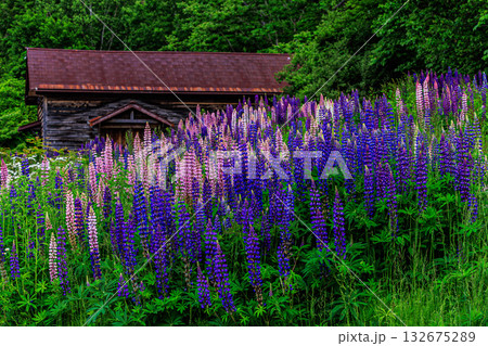 森に囲まれたルピナスの丘
