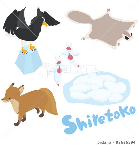 北海道の知床付近に生息する動物たちのイラストセット