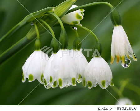 雨上がりのツリガネソウ (水滴を湛えたスノーフレーク の花)