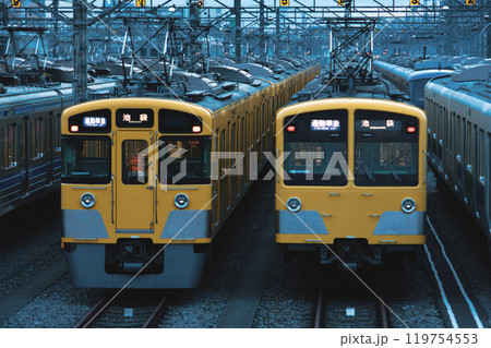 早朝の小手指車両基地に留置中の西武池袋線車両(2008年11月)