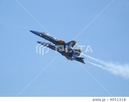 アクロバット飛行する米海軍ブルーエンジェルスのFA-18Cホーネット戦闘攻撃機