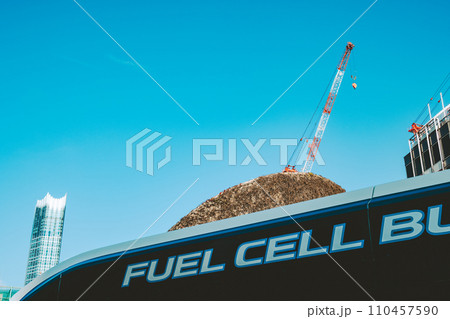 品川駅南口都営バス停に停車中の燃料電池バス
