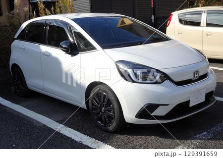 駐車場に並んだ乗用車(ホンダ・フィット 4代目)