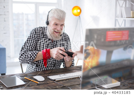 PCゲームを楽しむアジア人シニア男性