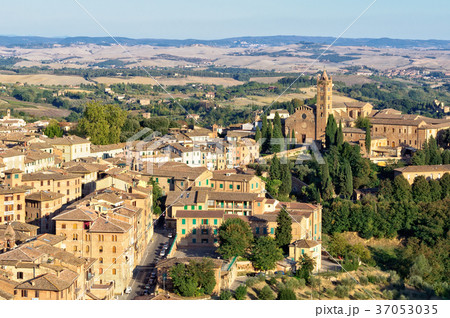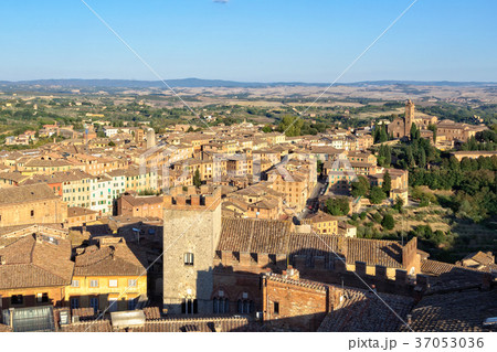 Old residential houses in the city center of Siena, seen from the Facciatone panoramic viewpoint