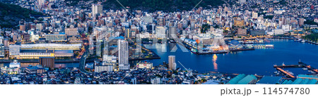 稲佐山展望台から長崎市街地の夜景(日没後)パノラマ 【長崎市】