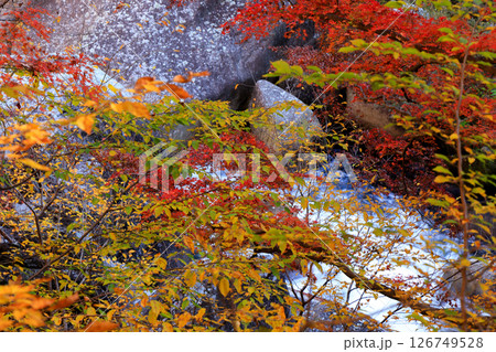 秋の山梨県山梨市 紅葉の西沢渓谷